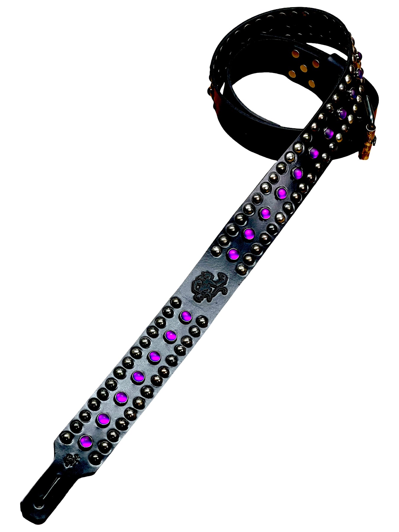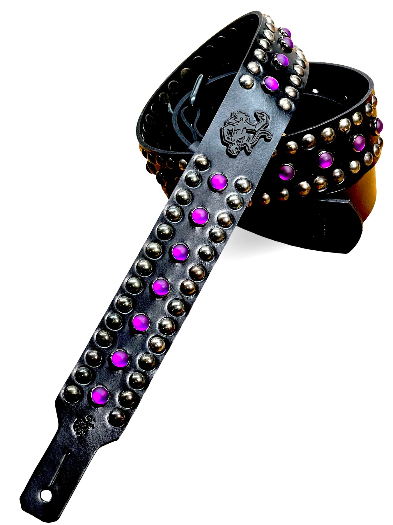 (Red Monkey signature Matte Black Leather with Antique Silver Studs and  Matte Purple stones)