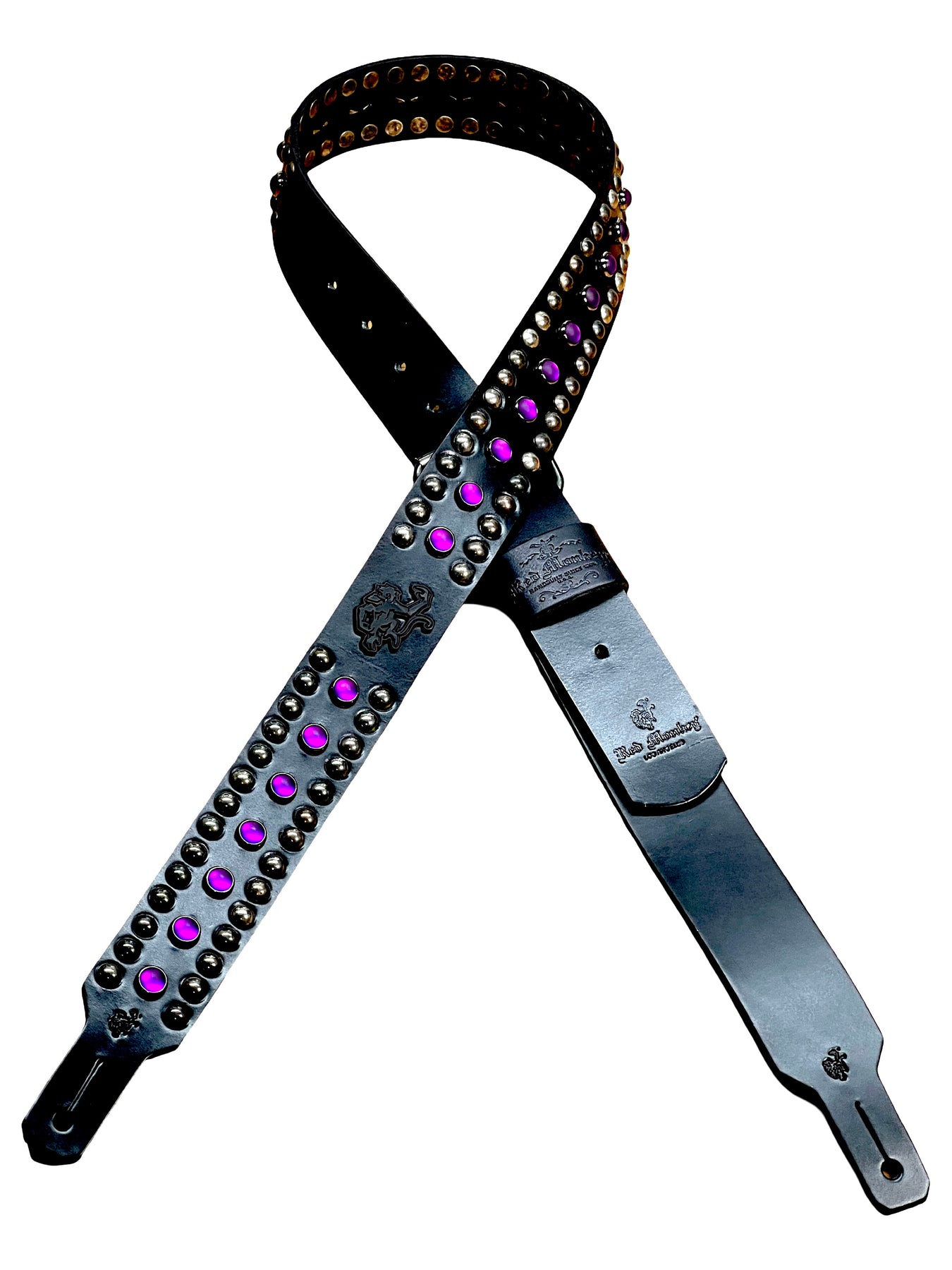 As shown: Red Monkey Signature Matte Black Leather/Antique Silver/Matte Purple Stones