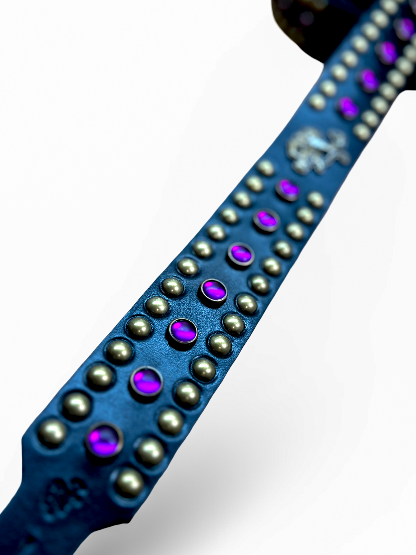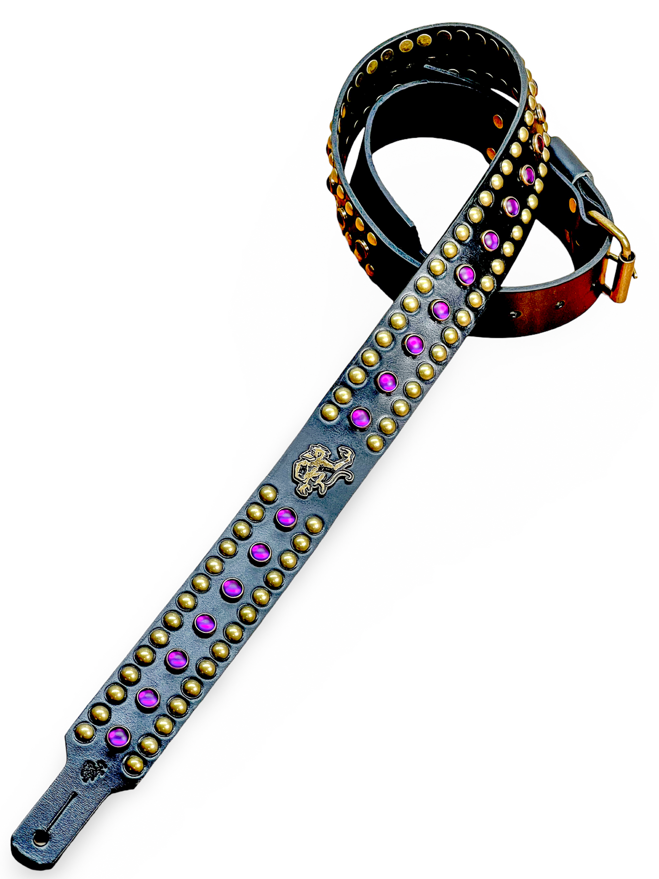 (Red Monkey signature Matte Black Leather with Antique Brass Studs and Matte Purple stones)