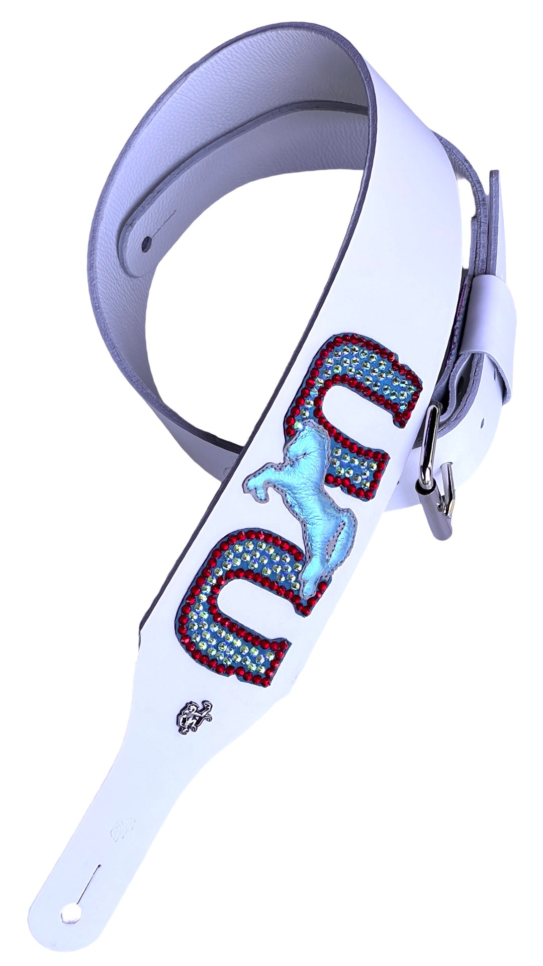 Custom shop guitar strap built for a client who is a huge Prince fan.
